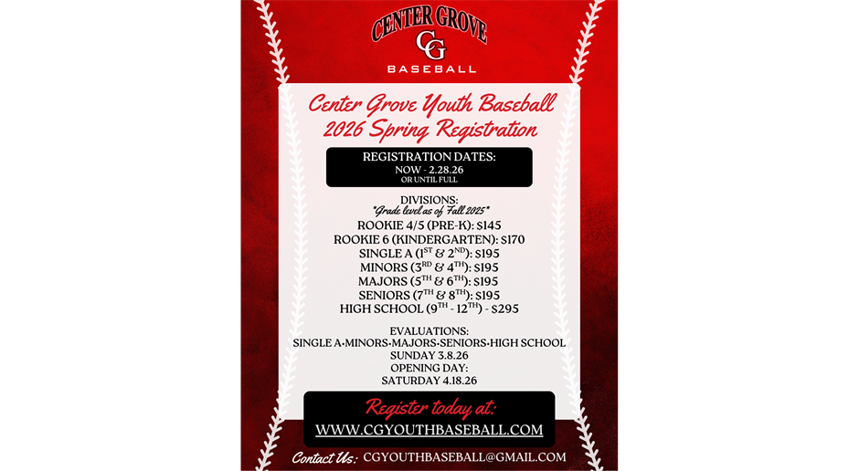Registration for the 2025 - 2026 Center Grove Youth Baseball Travel Tryouts is now open!
